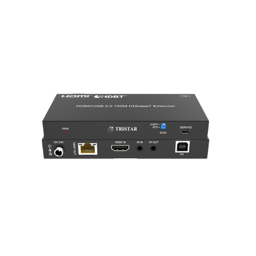 TRI-AVC-H150U2-T-5025 is a transmitter that can extend HDMI signal, bidirectional IR control signal, and USB KVM signal to a distance of up to 492 ft / 150 m (Long Reach Mode) via a single CAT6 cable.This product converts an HDMI signal to a standard HDBaseT signal and transmits it through LAN cable. It can easily control signal source device or display device from the remote end through bi-directional IR signal pass-through function. Video resolution is up to 4K2K@60Hz YUV 4:4:4. It also supports PoC.TRI-AVC-H150U2-T-5025 offers ideal solutions for homes, offices, digital entertainment centers, control centers, conference rooms, schools and corporate training environments, where require HDMI source and transmission over long distance.