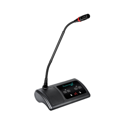 This is a full digital Wi-Fi wireless conference system designed for fast, cable-free setup and seamless communication. Its sleek, touch-enabled design features long-lasting batteries, built-in speakers, and dual interpretation selectors for multilingual meetings. Advanced OLED display, headset support, and pluggable microphones enhance user experience and audio clarity. With secure digital transmission and flexible configuration as Chairman or Delegate, it’s built for modern, efficient conferences.