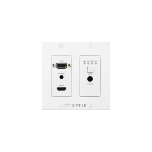 TRI-AVC-DWT-5020 features a US 2-gang decora form and can be installed on the wall and on the floor. It consists of one HDMI and one VGA inputs with a 3.5mm audio connector and extends 4K@60 4:2:0 video, along with power, RS232 and IR up to 70m over a single Cat 6a/7 cable to HDBaseT receiver.TRI-AVC-DWT-5020 offers ideal solutions for homes, offices, digital entertainment centers, control centers, conference rooms, schools and corporate training environments, where require the signal switching between VGA and HDMI sources and transmission over long distances.